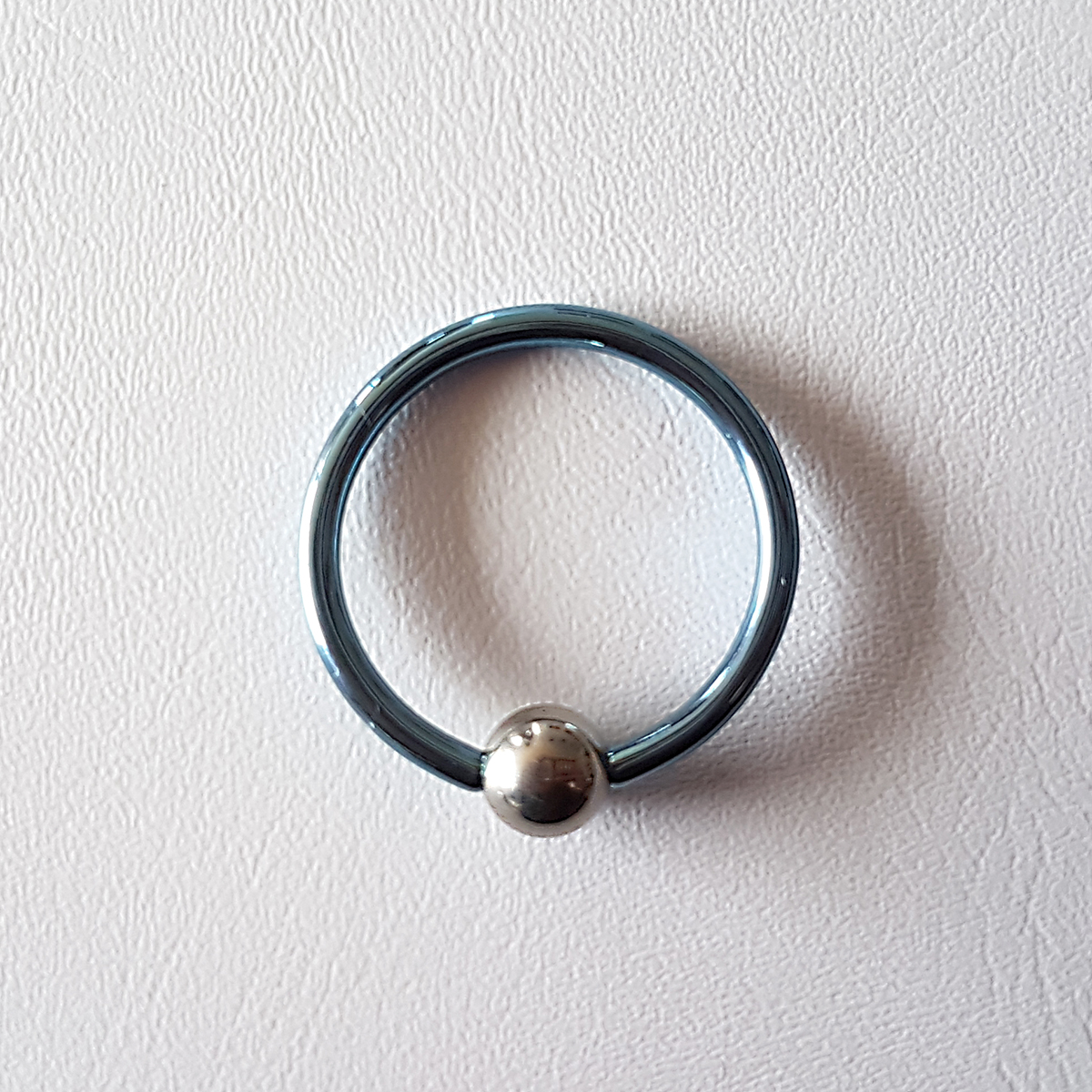 Argolla Captive CBR Big Gauge de Titanio Anodizada Celeste. Calibre 12Ga (2mm). Diámetro 19mm. Bola 6mm (No Anodizada).