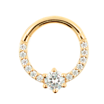 Clicker de Oro Solido 14Kt. con Zirconias. Calibre 16Ga (1,2mm), Diámetro Interno 8mm. Incluye 1 Unidad.