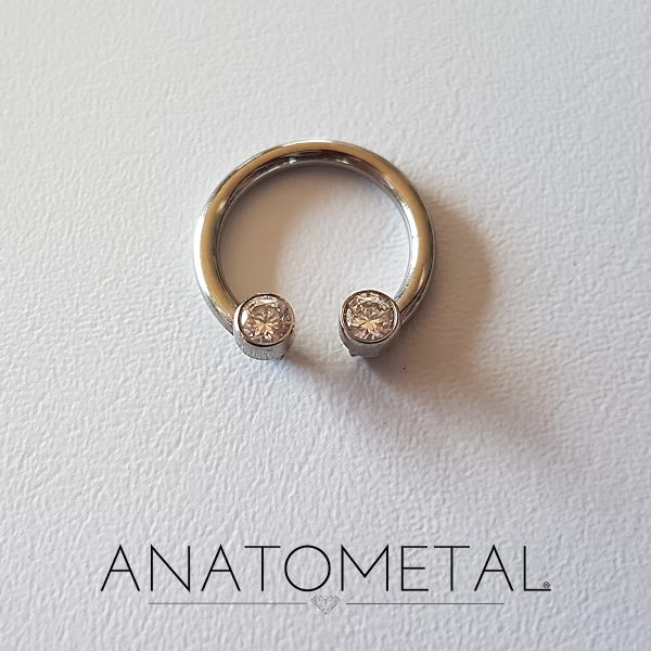 Argolla Front Facing de Titanio marca ANATOMETAL. Accesorios de Zirconias Swarovski Blancas. Calibre 14Ga (1,6mm). Diámetros 11mm y 14mm. Diámetro Zirconias 4mm.