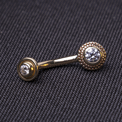 Joyería de Ombligo en Oro Sólido 14Kt. y Zirconias Blancas. Marca Sacred Symbols. Calibre 14Ga (1,6mm). Largo 10mm.