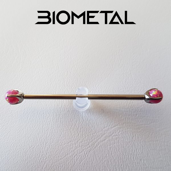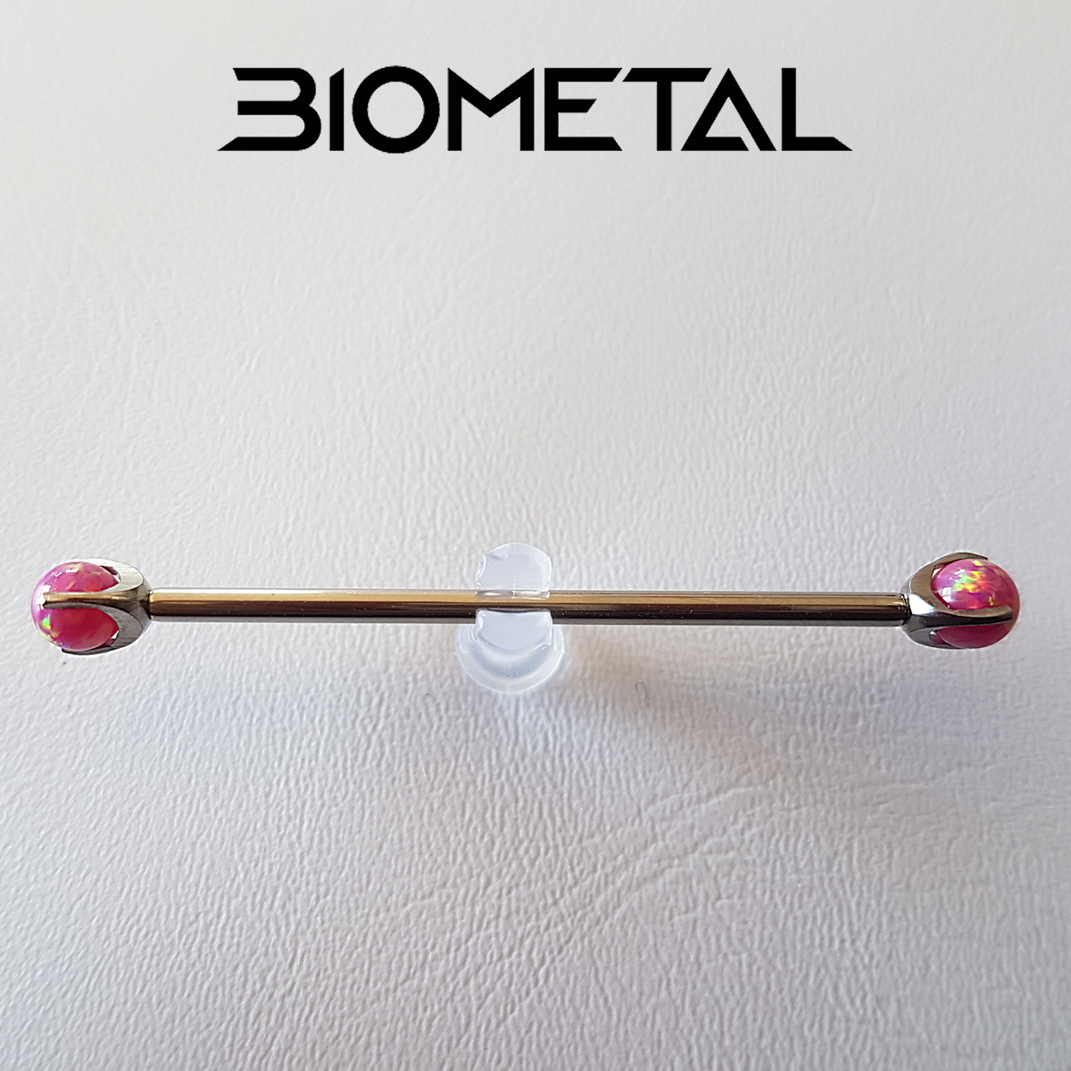 Barbell de Titanio con Opalos Fucsia Prongset de la marca BIOMETAL. Por favor seleccionar largo de barra deseada.