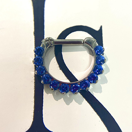 Clicker de Titanio INDUSTRIAL STRENGTH. Ideal para Septum y Daith. 12 Zirconias Swarovski Azul. Calibre 16Ga (1,2mm). Diámetros 10mm x 8mm