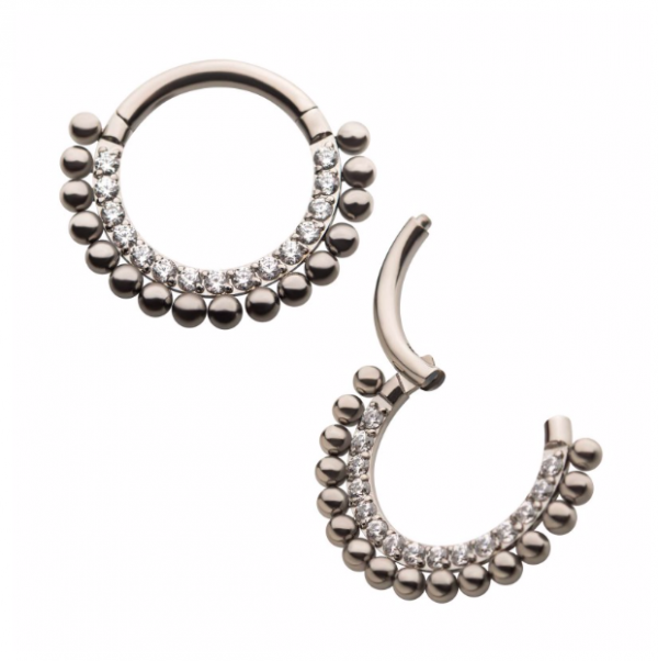 Clicker de Titanio con Zirconias y Bolitas. Calibre 16Ga (1,2mm). Diámetros 8mm y 10mm. Ideal para Septum, Daith y Helix.