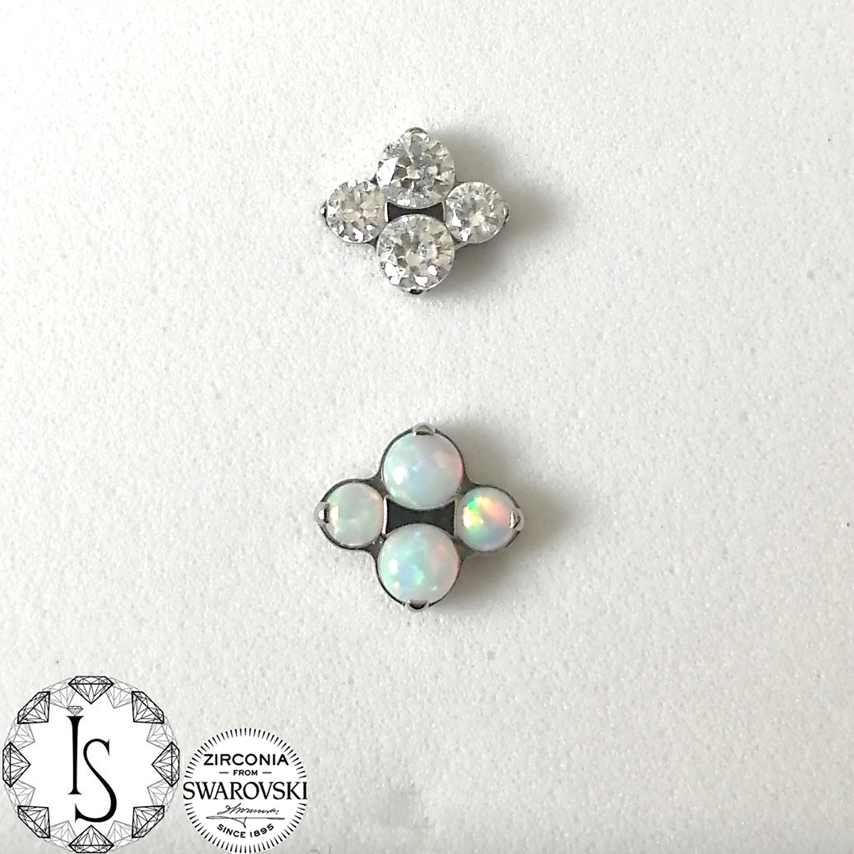 Cluster North Star con Gemas Montadas sobre Titanio marca INDUSTRIAL STRENGTH. Disponible con Zirconias Swarovski Blancas y Opalos Blancos. Calibre 14Ga (1,6mm). Dimensión 6,5mm x 5,5mm. No Incluye Barra. Puedes Comprar la Barra Aquí!