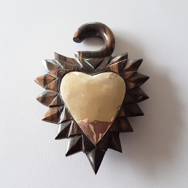 Colgante de Madera y Bronce. Calibre 8mm. Diámetro 90mm x 65mm. Incluye 1 Unidad. Nota: Para alargar la Vida Util de este Artículo, es Imprescindible no Mojarlo, pues la Madera y Bronce se Deterioran.