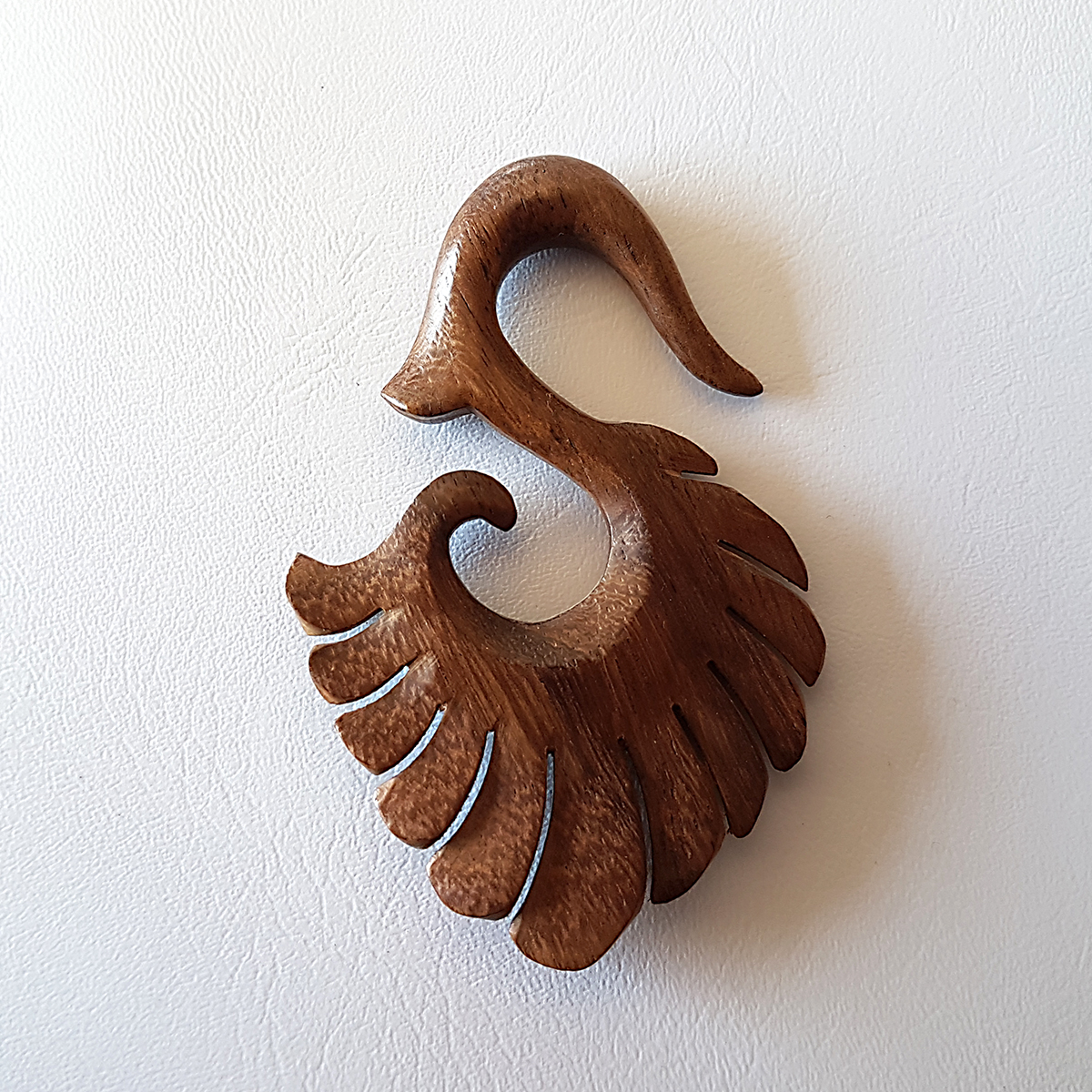 Colgante de Madera Tallado. Calibre 6mm. Dimensiones: 57mm x 38mm. 1 Unidad Disponible. No Tiene Par. Nota: La Joyería de Madera es Fabricada a Mano, por lo que las Dimensiones podrían Variar Minimamente. Para alargar la Vida Util de este Artículo, es Imprescindible no Mojarlo.