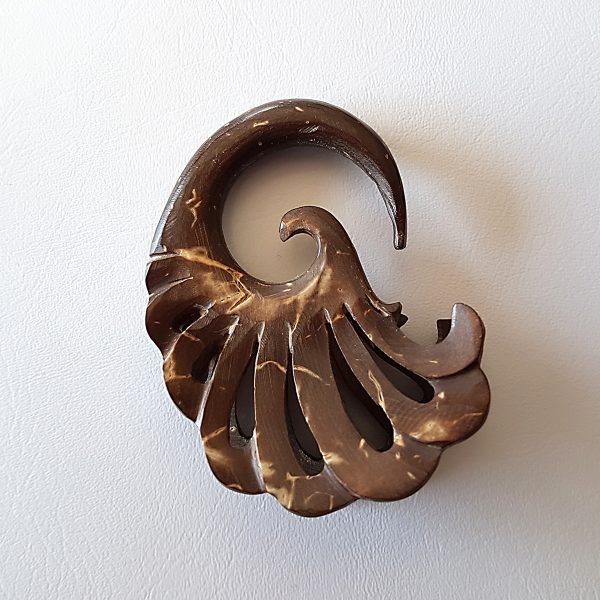 Colgante de Madera Tallado. Calibre 6mm. Dimensiones: 50mm x 40mm. 1 Unidad Disponible. No Tiene Par. Nota: La Joyería de Madera es Fabricada a Mano, por lo que las Dimensiones podrían Variar Minimamente. Para alargar la Vida Util de este Artículo, es Imprescindible no Mojarlo.