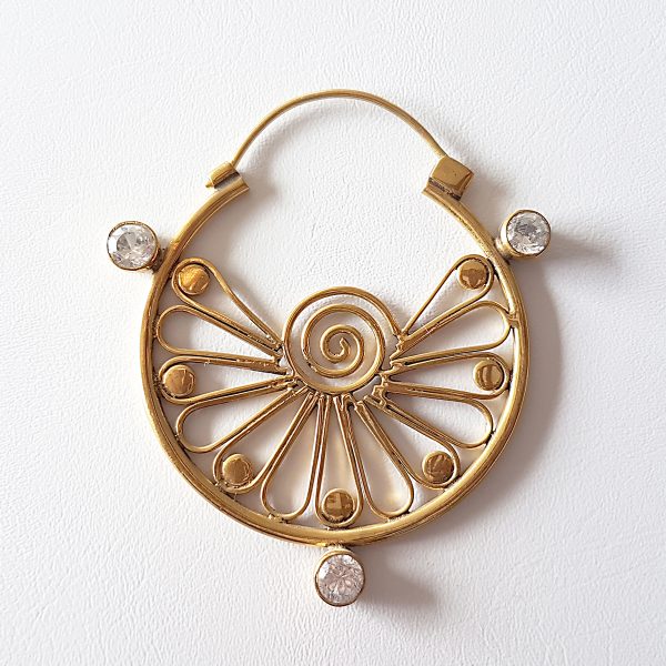 Colgante Tradicional de Bali, Indonesia. Fabricado en Bronce con Baño de Oro y Zirconias. Diámetro 44mm. Incluye 1 Unidad. No tiene Par. Nota: El Bronce al no ser un Metal Noble, podría causar Reacciones Alérgicas. También puede Variar su Color Con el Agua y el Uso Diario.