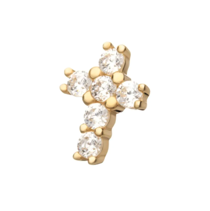 Cruz con Zirconias Blancas en Oro Sólido de 14Kt. Joyería Push Pin (Sin Rosca). Diámetro: 6mm x 4mm. No Incluye Barra. Puedes Comprar la Barra Aquí!