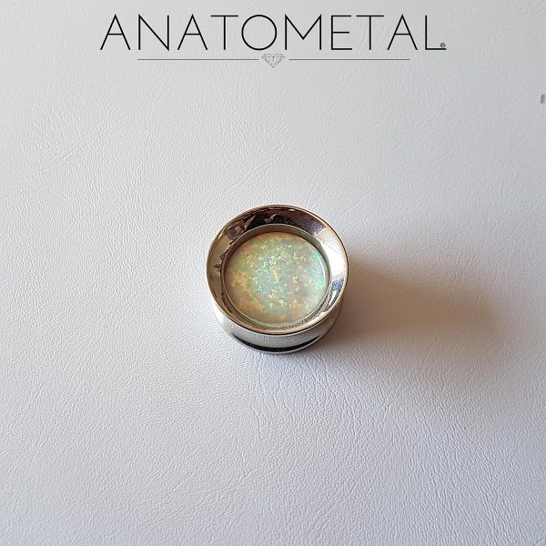 Floating Stone Eyelet Double Flared Acero Quirúrgico con Opalo, marca ANATOMETAL. Diámetro Interno 22mm. Diametro Externo (Flared End) 26mm. Incluye 2 Unidades.