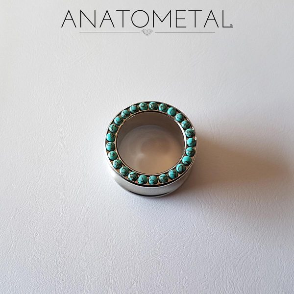 Gemmed Eyelet Double Flared Acero Quirúrgico con Turquesa, marca ANATOMETAL. Diámetro Interno 26mm. Diametro Externo (Flared End) 29mm. Incluye 2 Unidades.