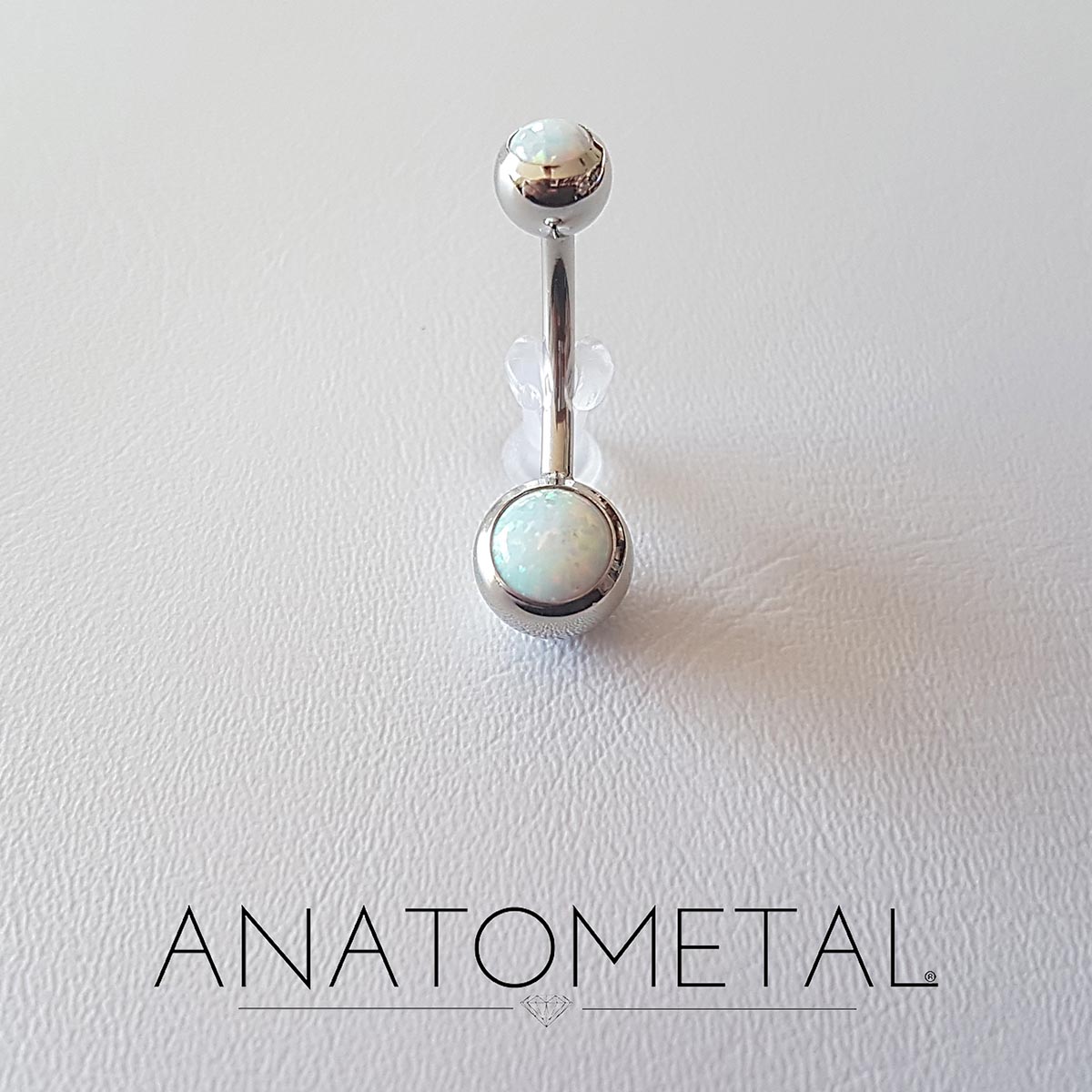 Joyería de Ombligo, Barbell Curvo de Acero Quirúrgico con Opalos. Marca ANATOMETAL. Calibre 14Ga (1,6mm). Diámetro 12mm. Accesorio Superior 5mm, Inferior 8mm.
