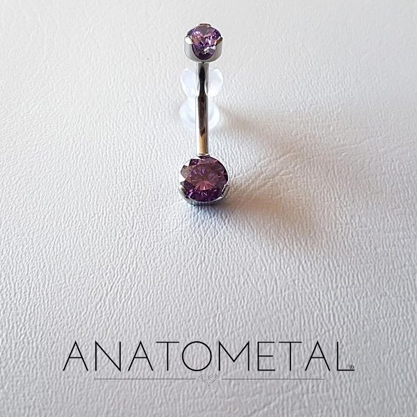 Joyería de Ombligo, Barbell Curvo de Titanio con Zirconias Swarovski. Marca ANATOMETAL. Calibre 14Ga (1,6mm). Diámetro 12mm. Zirconia Superior 4mm, Inferior 6mm.