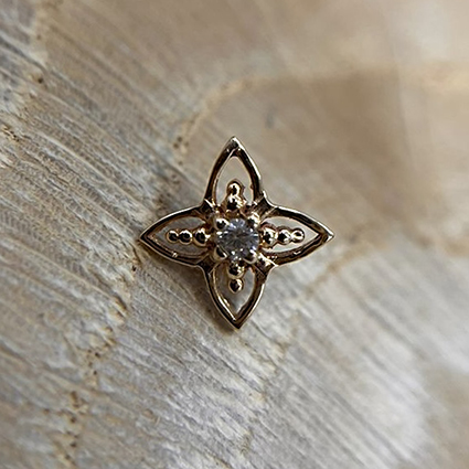 Top Oro Sólido 14Kt. marca Alika Konti (México). Calibre 14Ga (1,6mm). Dimensiones: 7,5mm x 7,5mm. No Incluye Barra, Puedes Comprar la Barra Aquí!.