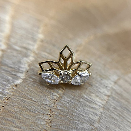 Top Oro Sólido 14Kt. marca Alika Konti (México). Calibre 14Ga (1,6mm). Dimensiones: 8mm x 6mm. No Incluye Barra, Puedes Comprar la Barra Aquí!.