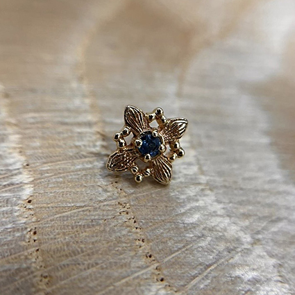 Top Oro Sólido 14Kt. marca Alika Konti (México). Calibre 14Ga (1,6mm). Dimensiones: 6,5mm x 6,5mm. No Incluye Barra, Puedes Comprar la Barra Aquí!.