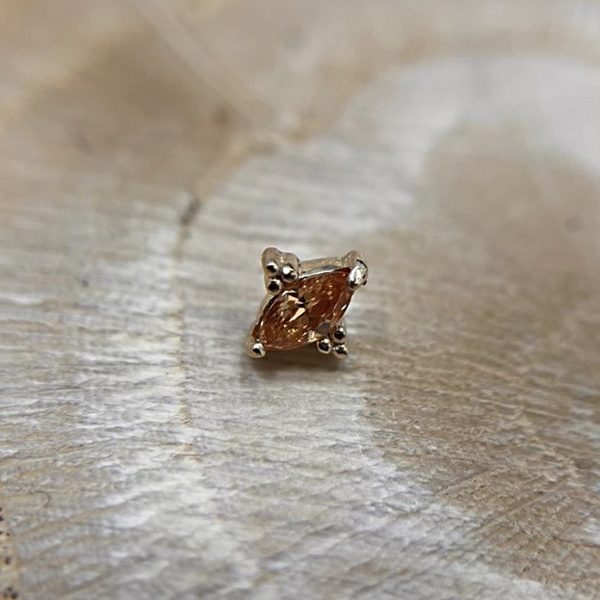 Top Oro Sólido 14Kt. marca Alika Konti (México). Calibre 14Ga (1,6mm). Dimensiones: 5mm x 5mm. No Incluye Barra, Puedes Comprar la Barra Aquí!.